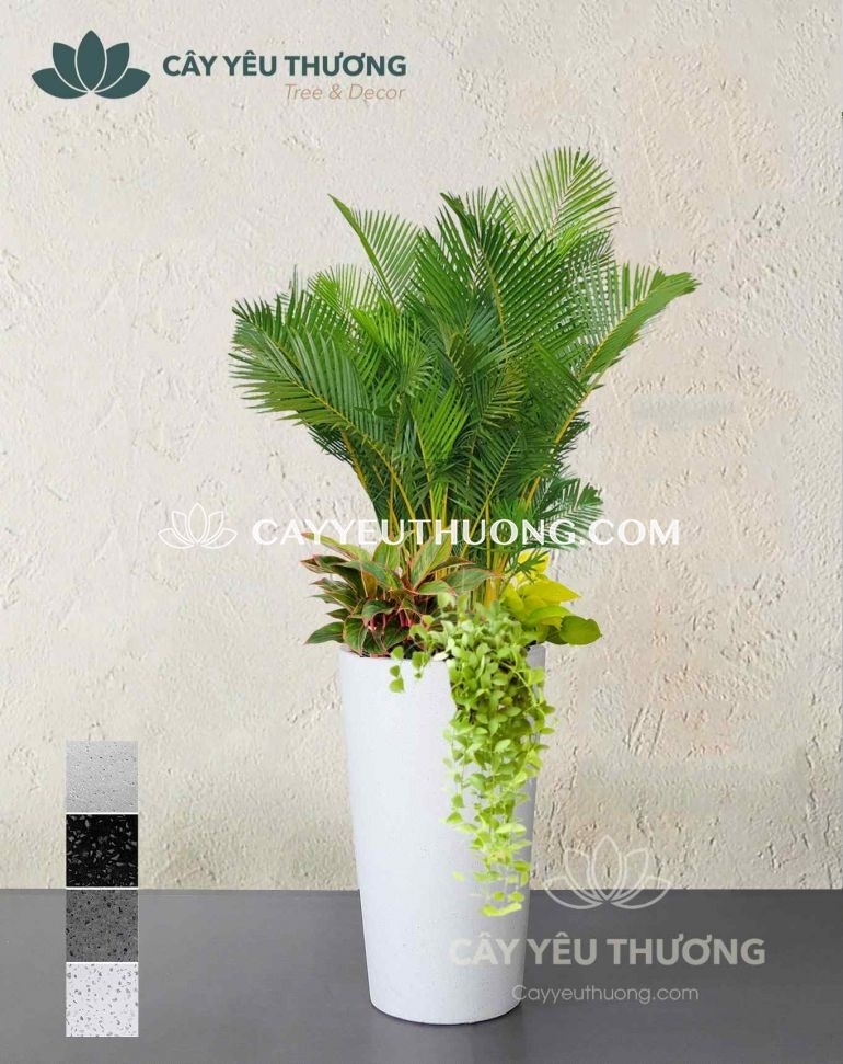 Cau vàng đài loan - Chậu cây mix nhiều cây nhỏ ở gốc đặt quán cà phê , nhà hàng lớn