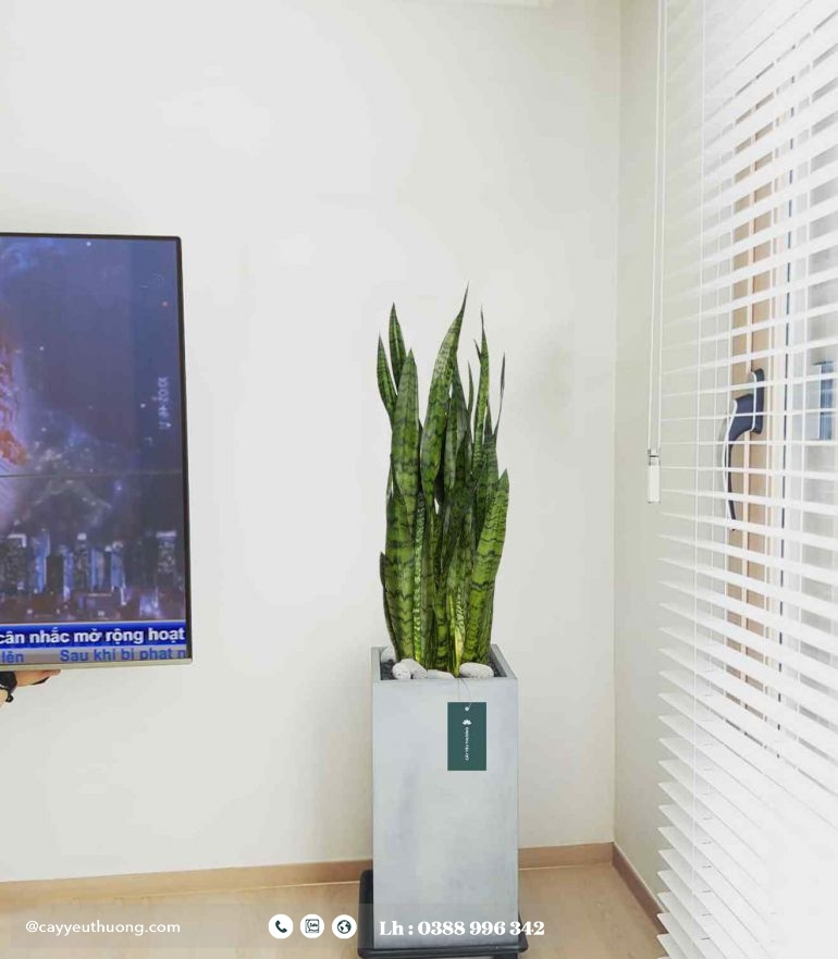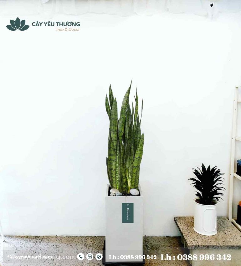 Cây lưỡi hổ xanh - Chậu xi măng,chậu đá mài trụ chữ nhật 30x30x60cm