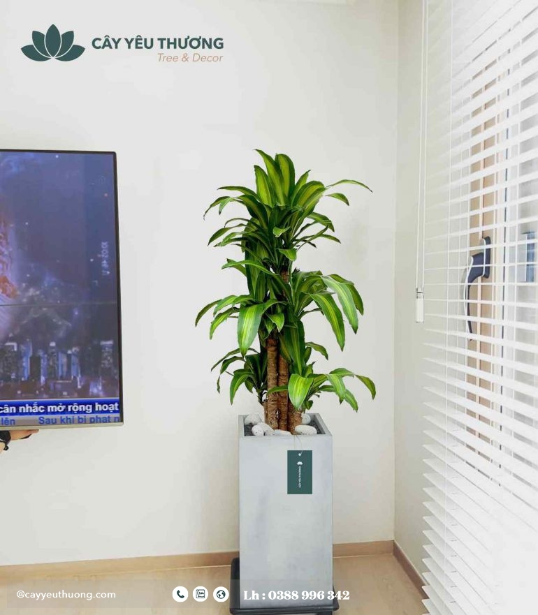 Cây phát tài khúc - Chậu xi măng,chậu đá mài trụ chữ nhật 30x30x60cm