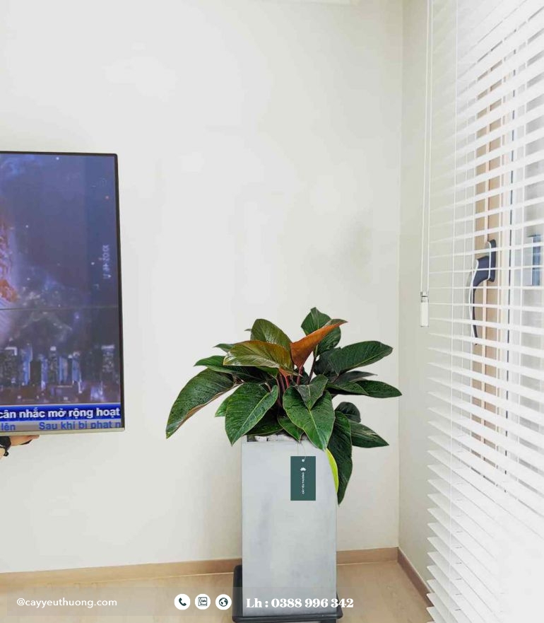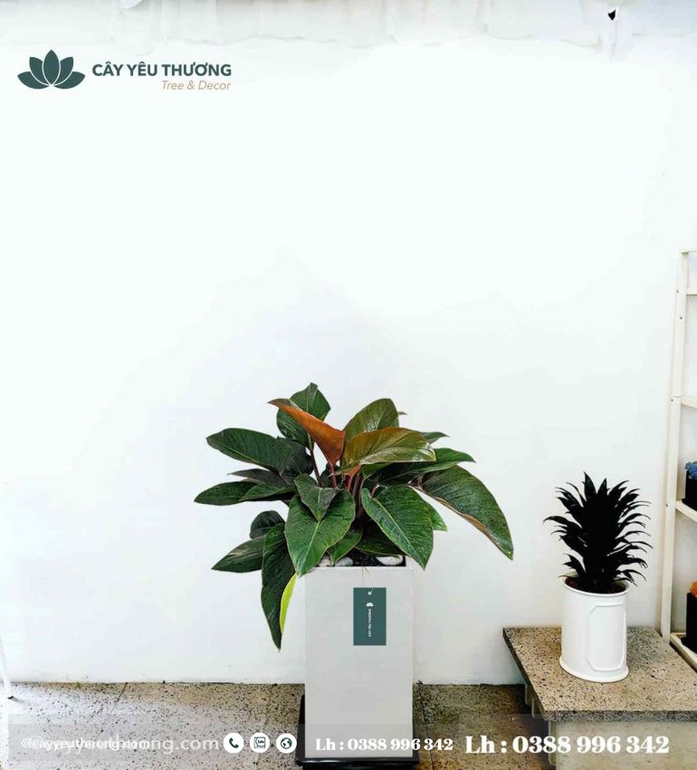 Cây trầu bà đế vương đỏ - Chậu xi măng,chậu đá mài trụ chữ nhật 30x30x60cm
