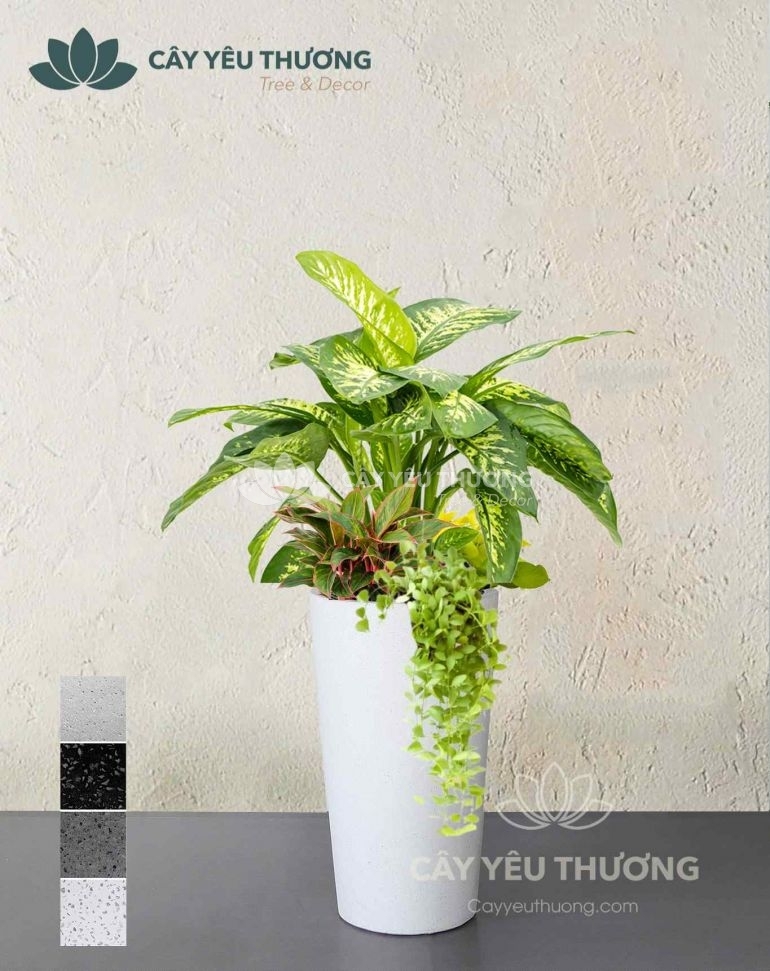 vạn niên thanh - Chậu cây mix nhiều cây nhỏ ở gốc phong thuỷ nhiều năng lượng tích cực